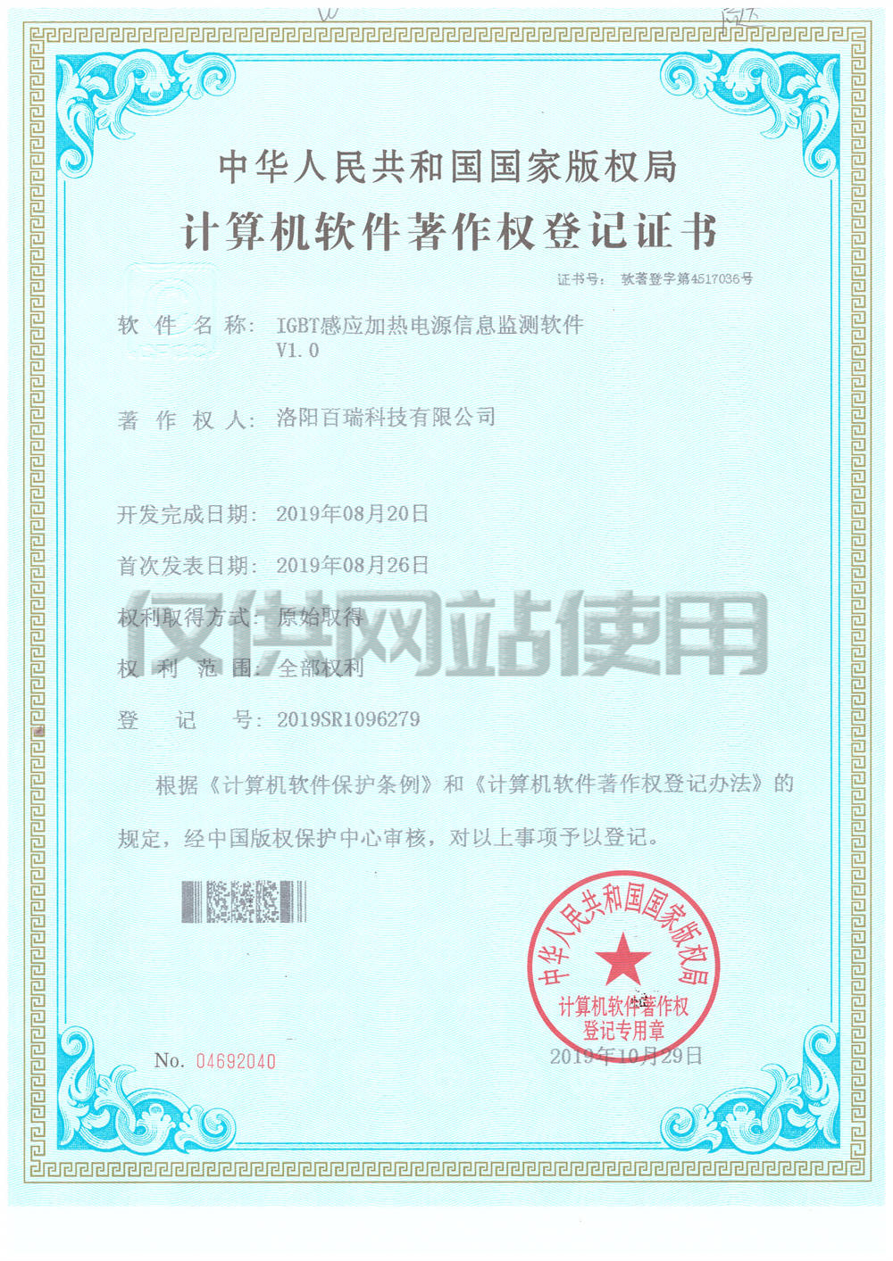 計算機(jī)軟件著作權(quán)登記證書1